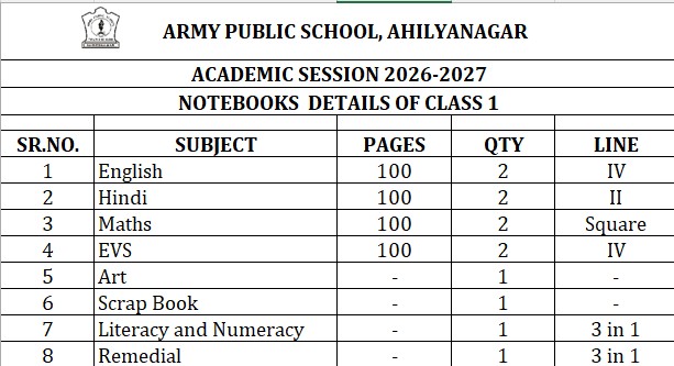 Notebooks List for Class V
