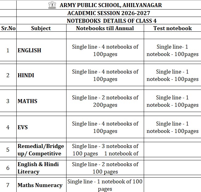 Notebooks List for Class IV